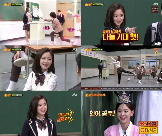 Kang Hanna, que apareceu no 'Knowing Brother'(JTBC) no dia 17, foi recebida com buquês entusiasmado dos membros do programa, aparecendo como um lindo sorriso com sua covinha de marca registrada.